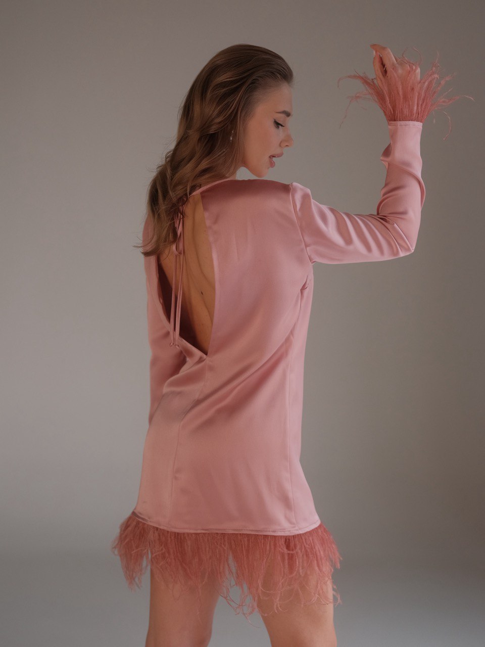 Спідниця з декоративним пір'ям у світло рожевому кольорі